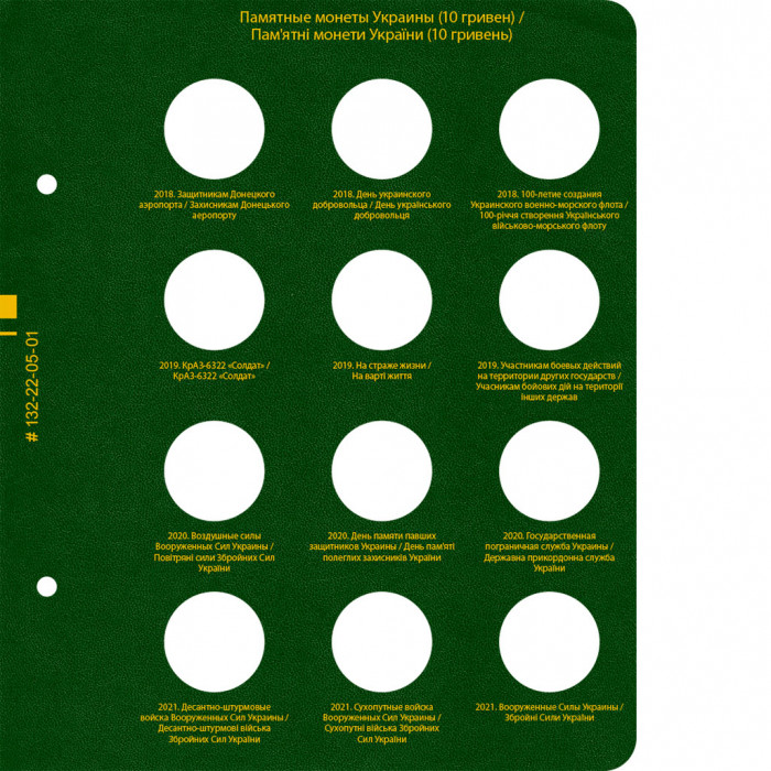 Альбом для коллекции памятных монет Украины номиналом 10 гривен из недрагоценных металлов с 2018 года по настоящее время.