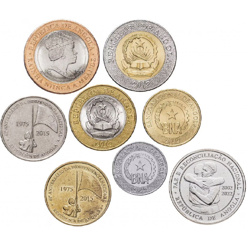 Ангола 50 сентимо 1 5 10 20 50 100 200 кванз 2012-2022 год Набор из 8 монет