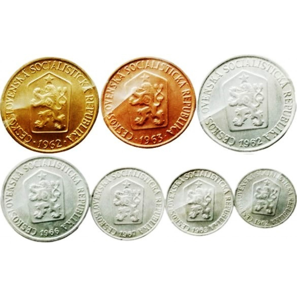 Чехословакия 1 3 5 10 25 50 геллеров 1 крона 1961-1971 год Набор из 7 монет
