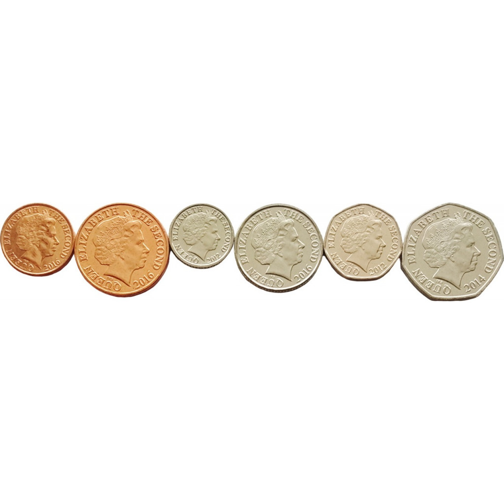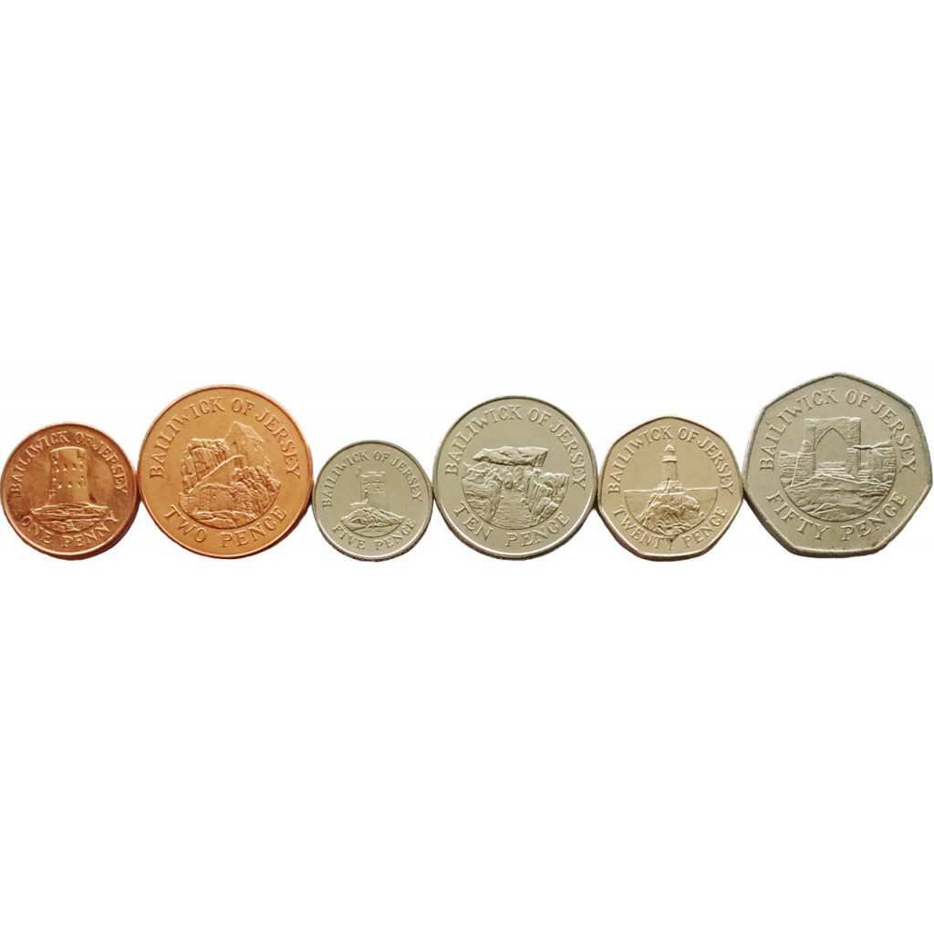 Джерси 1 2 5 10 20 50 пенсов 1998-2016 год Набор 6 монет