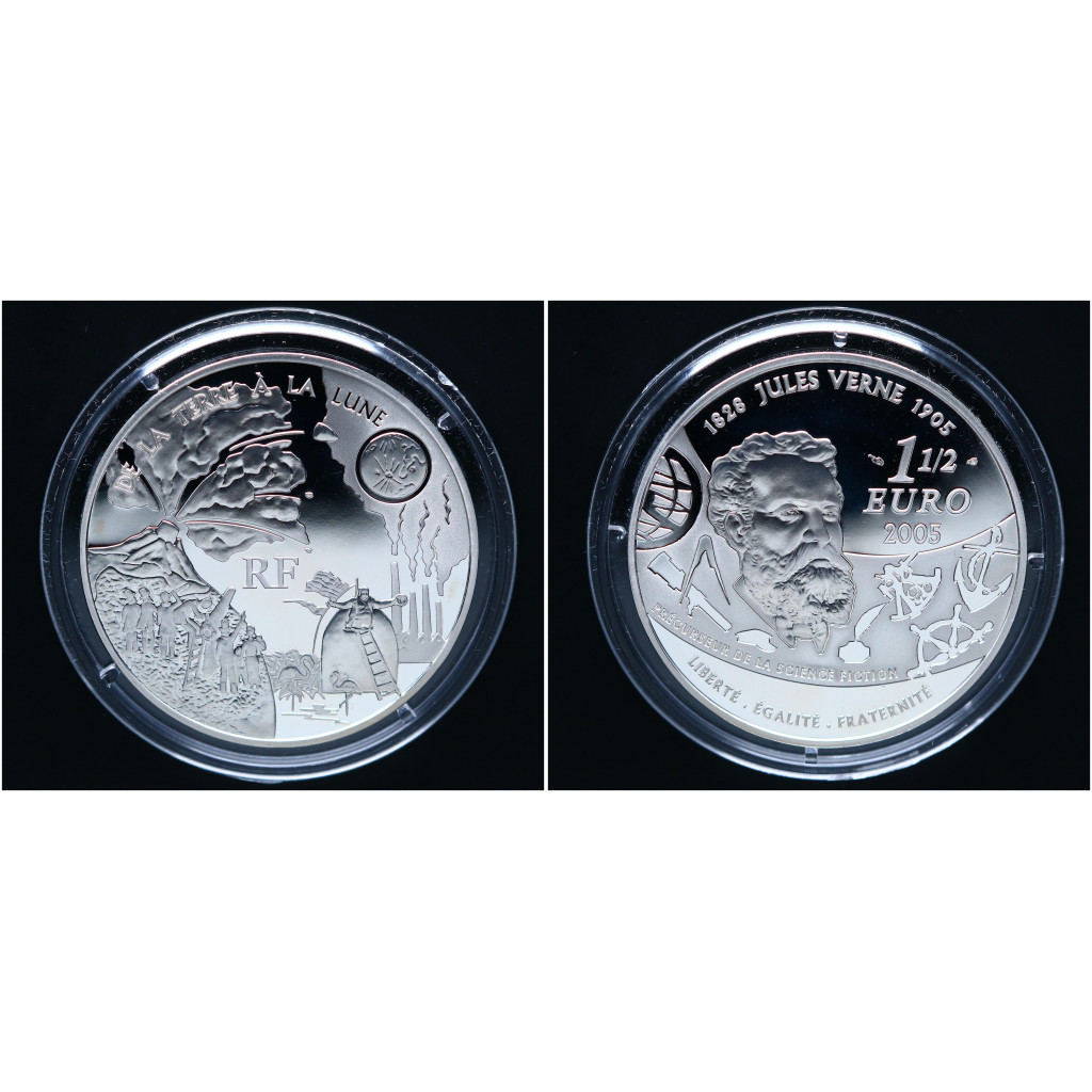 Франция 1 1/2 - 1,5 Евро 2005 год Ag 100 лет со дс Жюля Верна / С Земли на Луну РЕДКАЯ !