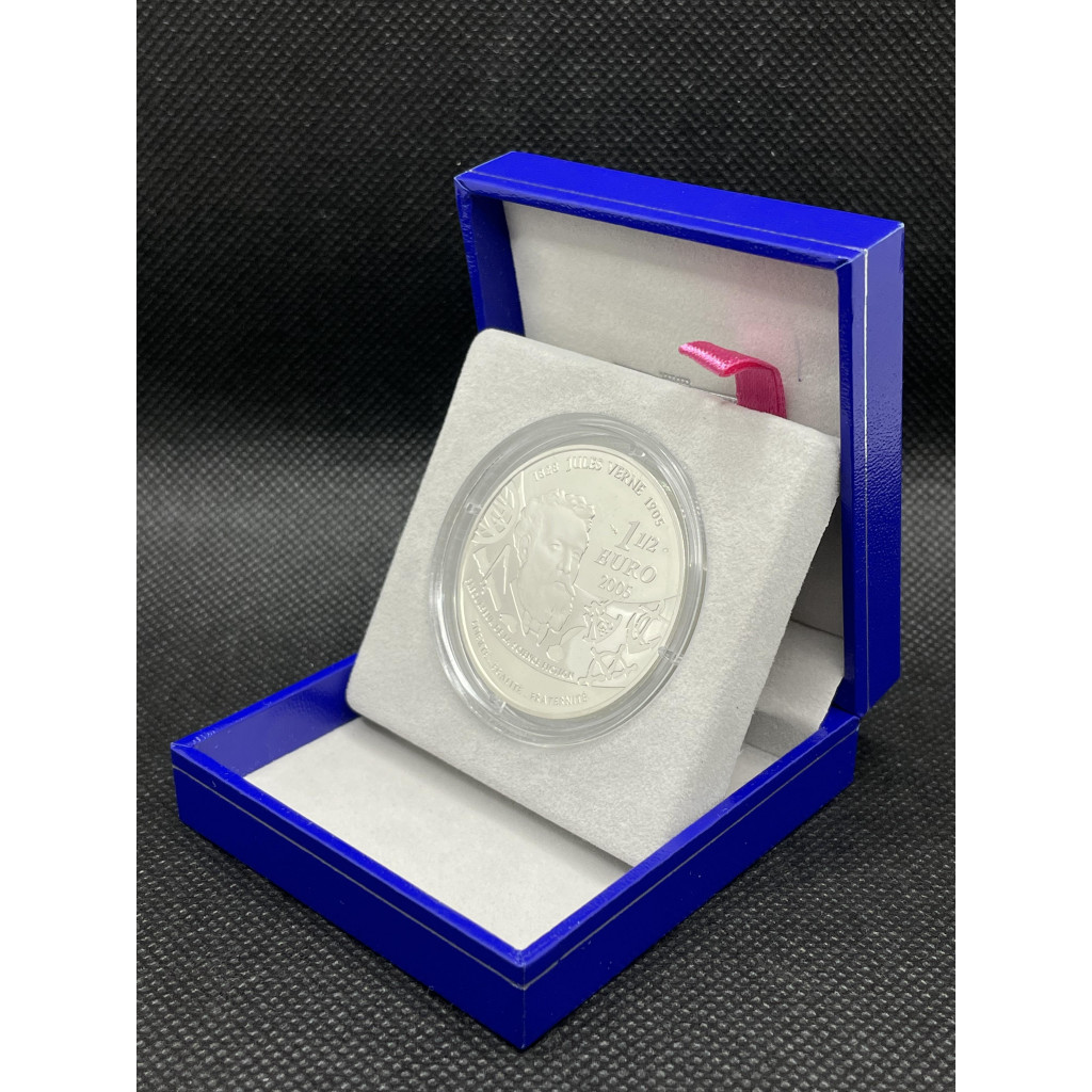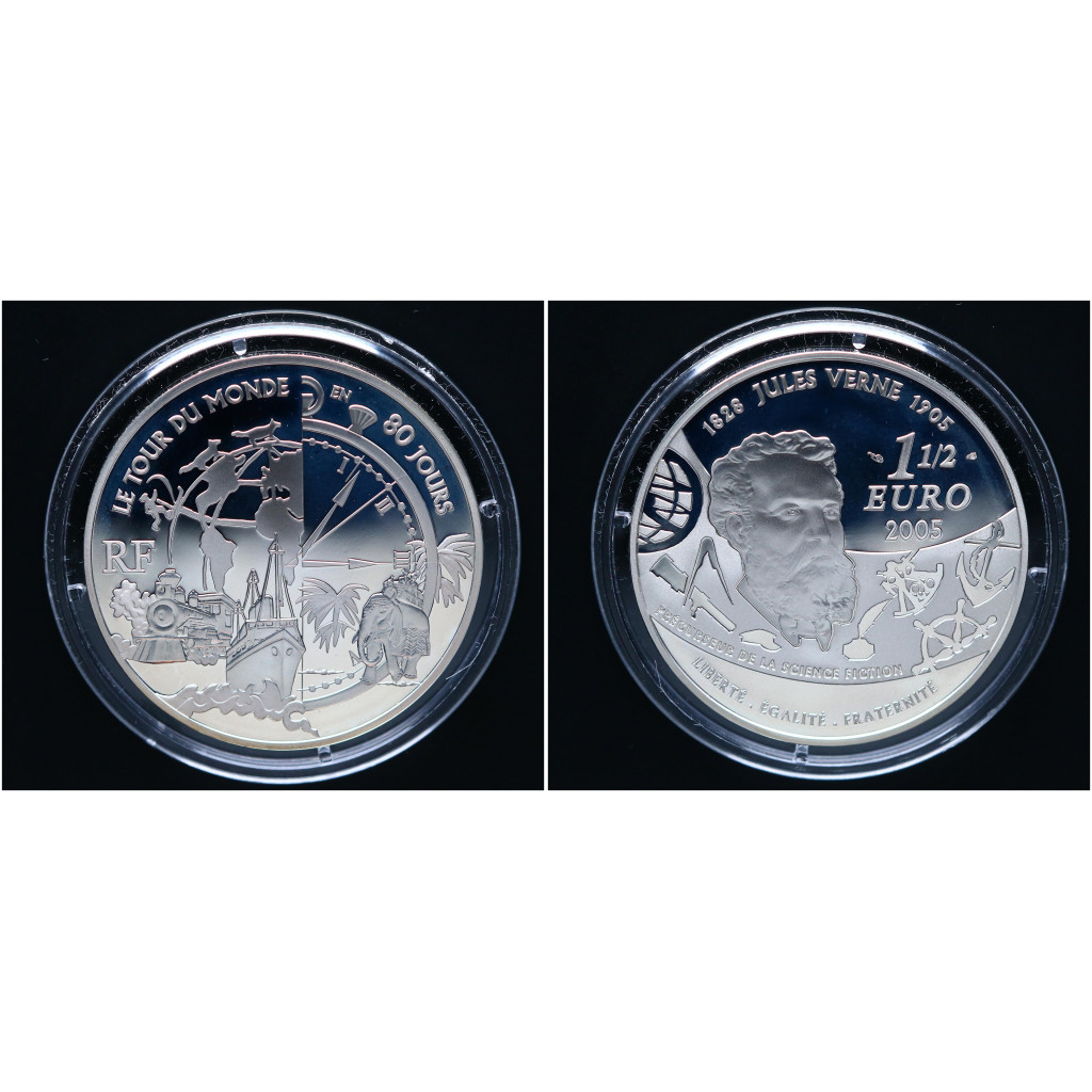 Франция 1 1/2 - 1,5 Евро 2005 год Ag 100 лет со дс Жюля Верна / Вокруг света за 80 дней РЕДКАЯ !