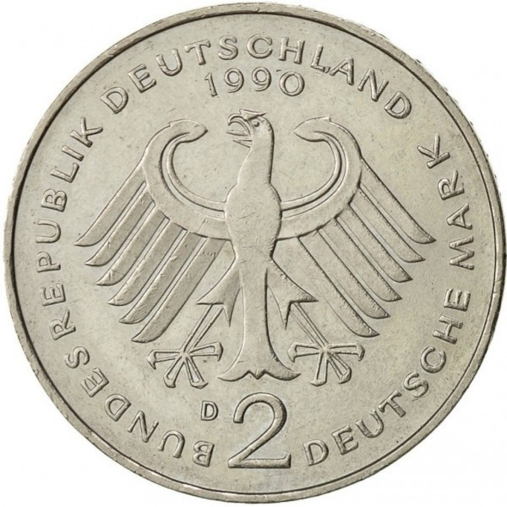Германия 2 марки 1990 D год Франц Йозеф Штраус KM# 175