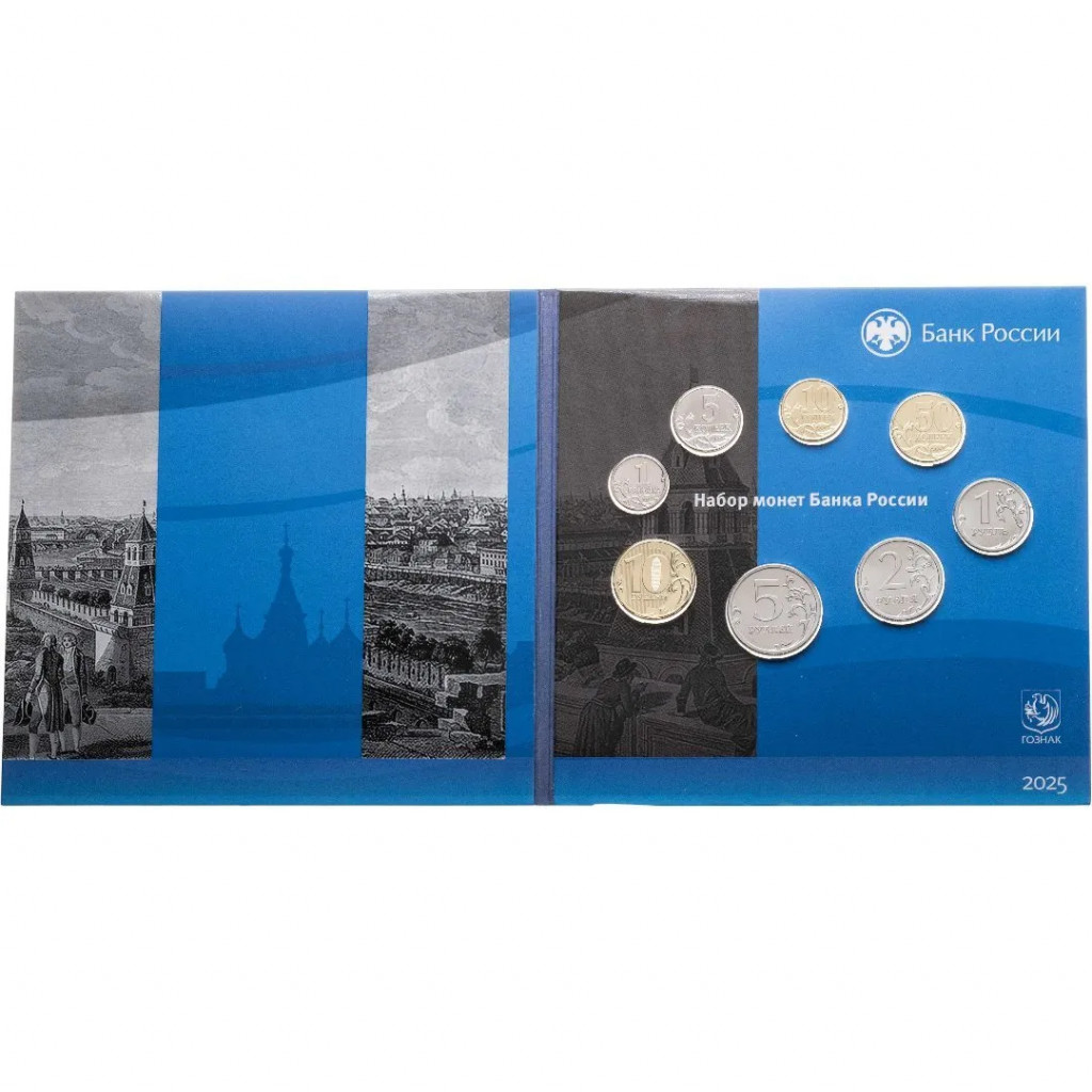 Годовой набор разменных монет 2025 СПМД 1 5 10 50 копеек 1 2 5 10 рублей Гознак