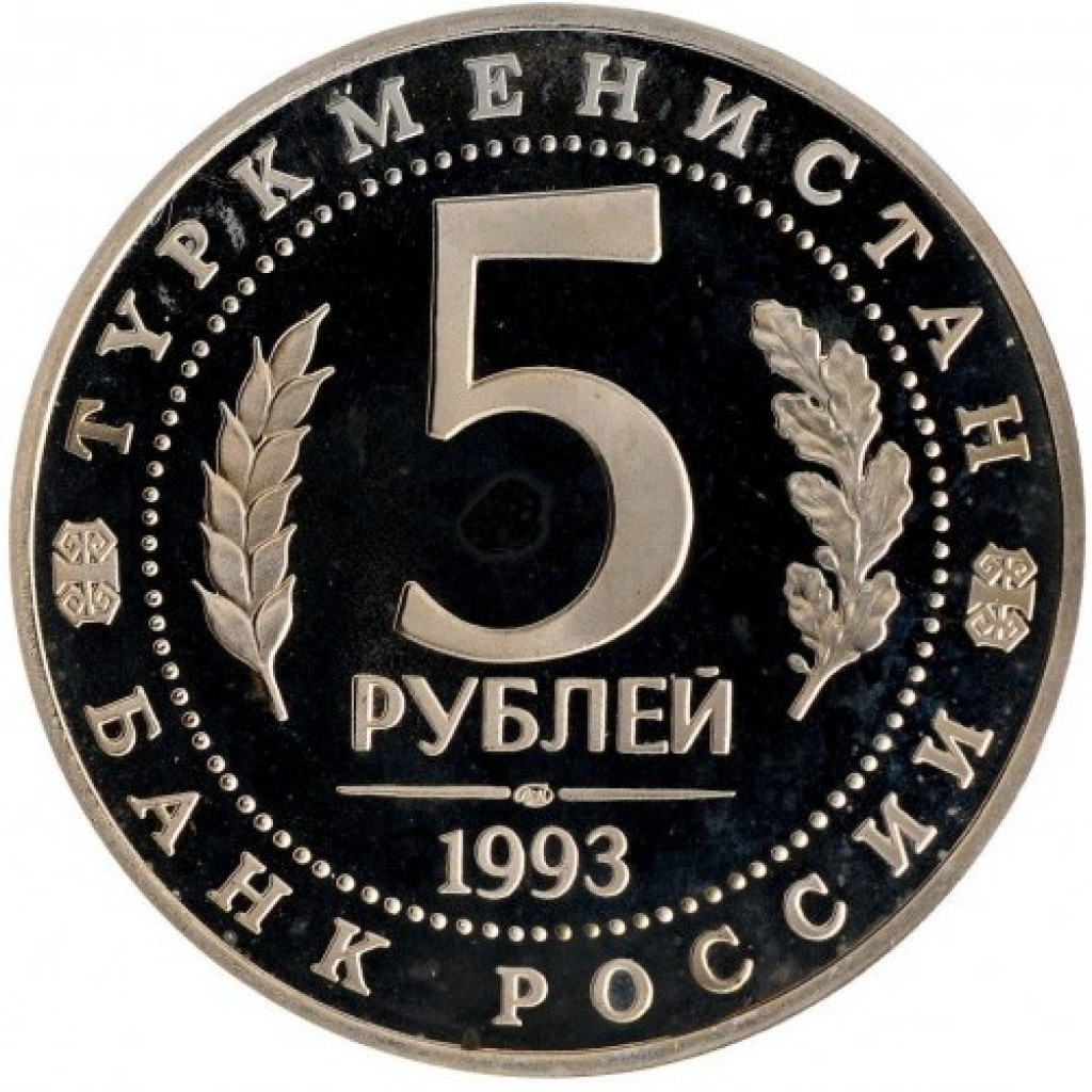 Россия 5 рублей 1993 ЛМД PROOF Y# 339 Архитектурные памятники древнего Мерва, Республика Туркменистан в запайке
