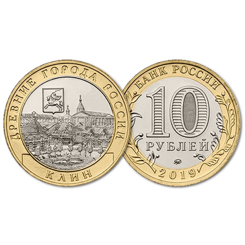 Россия 10 Рублей 2019 ММД год UNC Клин Древние города России (BOX11)