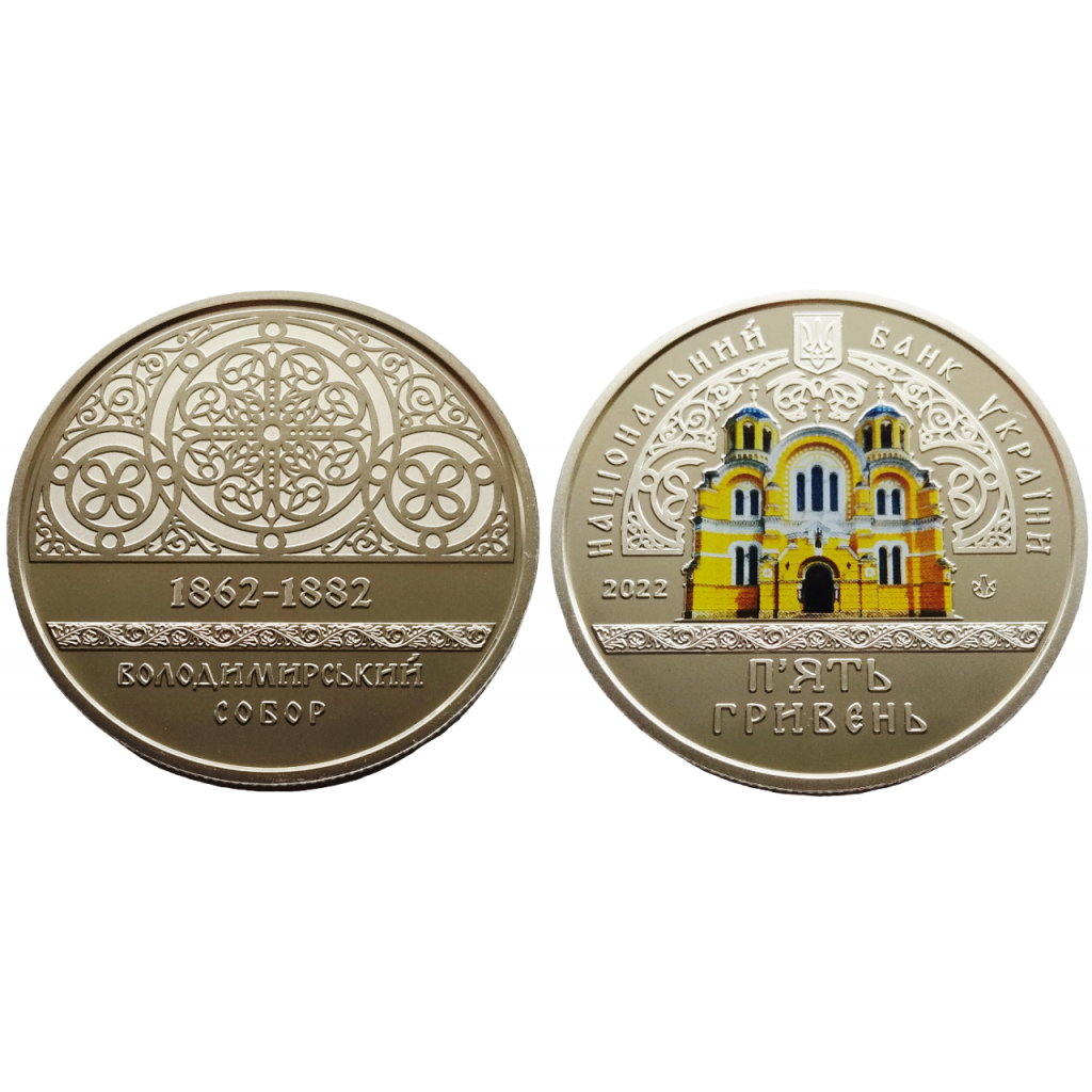 Украина 5 гривен 2022 год BUNC UC# 504 Владимирский собор в г. Киеве