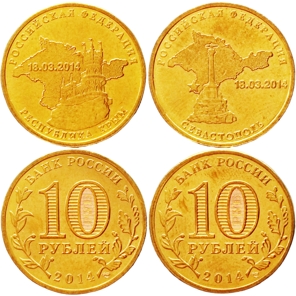 Россия 10 рублей 2014 год UNC Вхождение в состав РФ. Республика Крым и Севастополь Набор из 2 монет