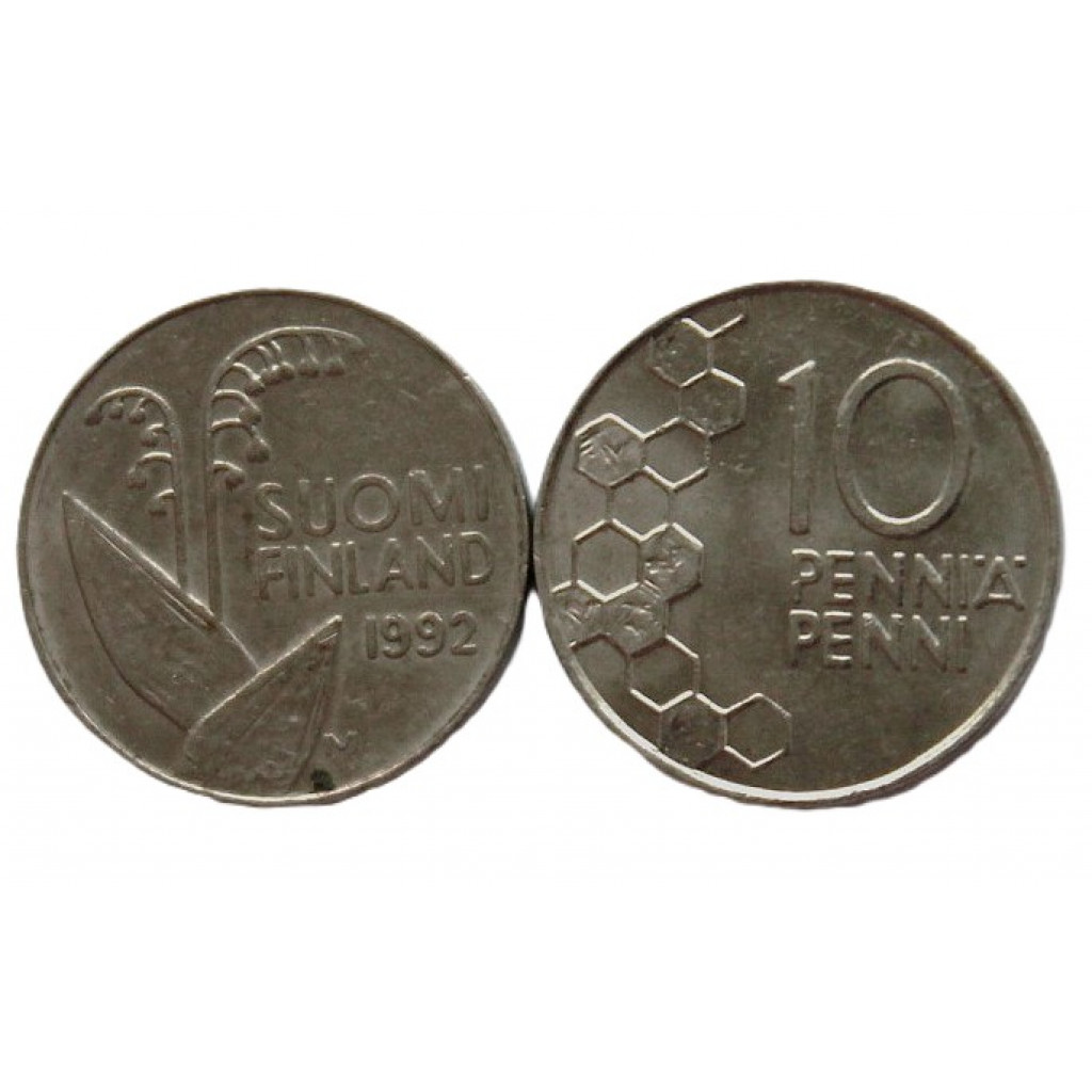 ФИНЛЯНДИЯ 10 пенни 1992 (KM# 65) Ландыш - Пчелиные соты