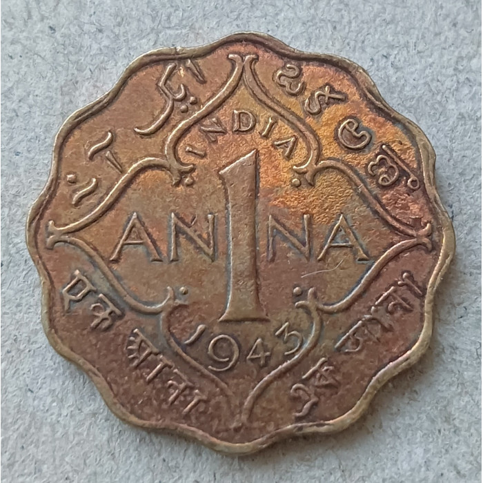 Британская Индия 1 Анна 1943 год , Король Георг 6