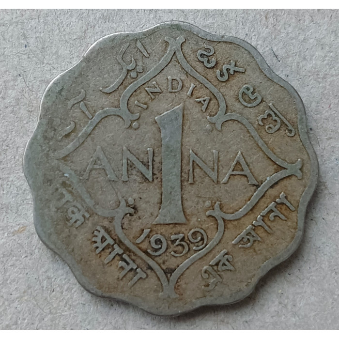 Британская Индия 1 Анна 1939 год , Король Георг 6
