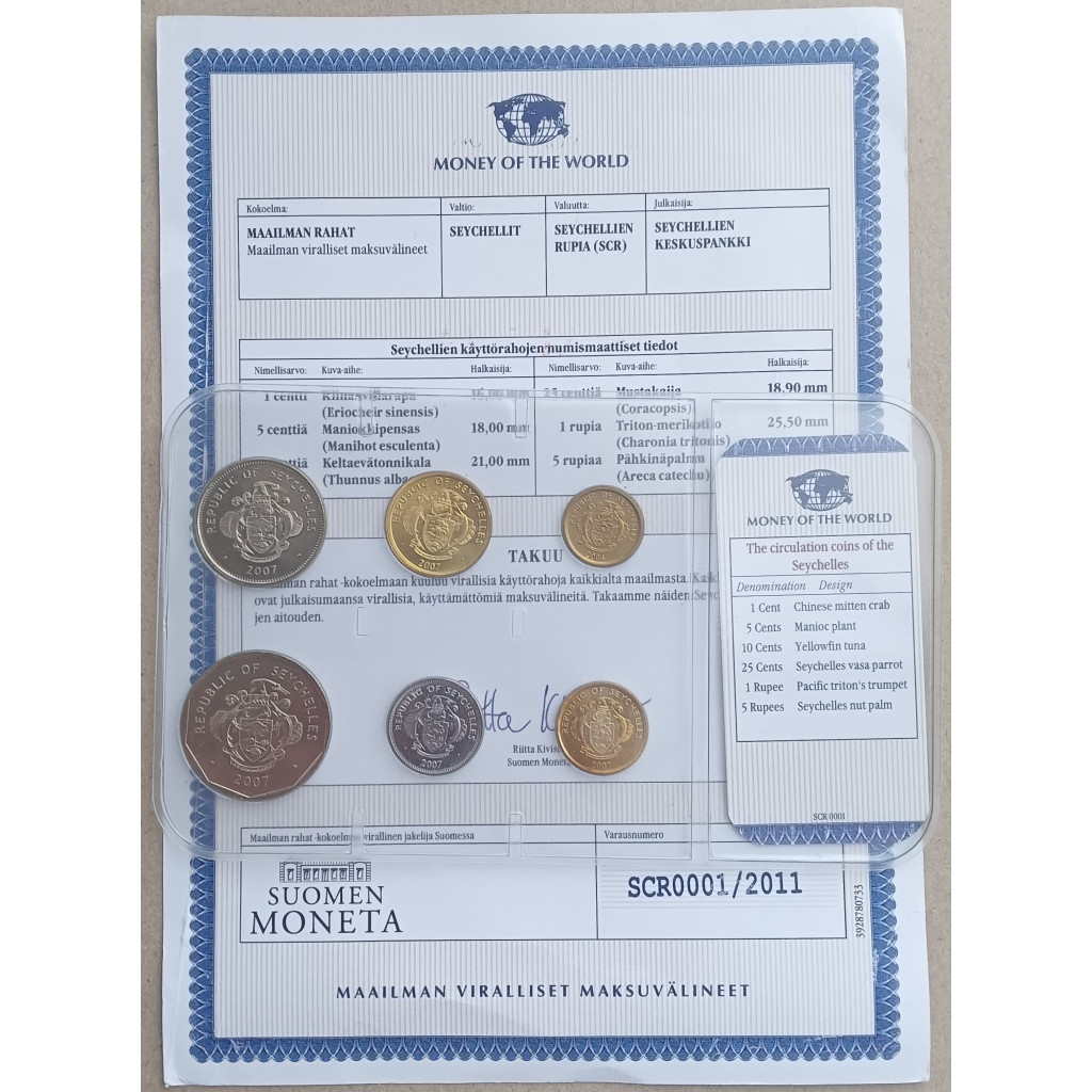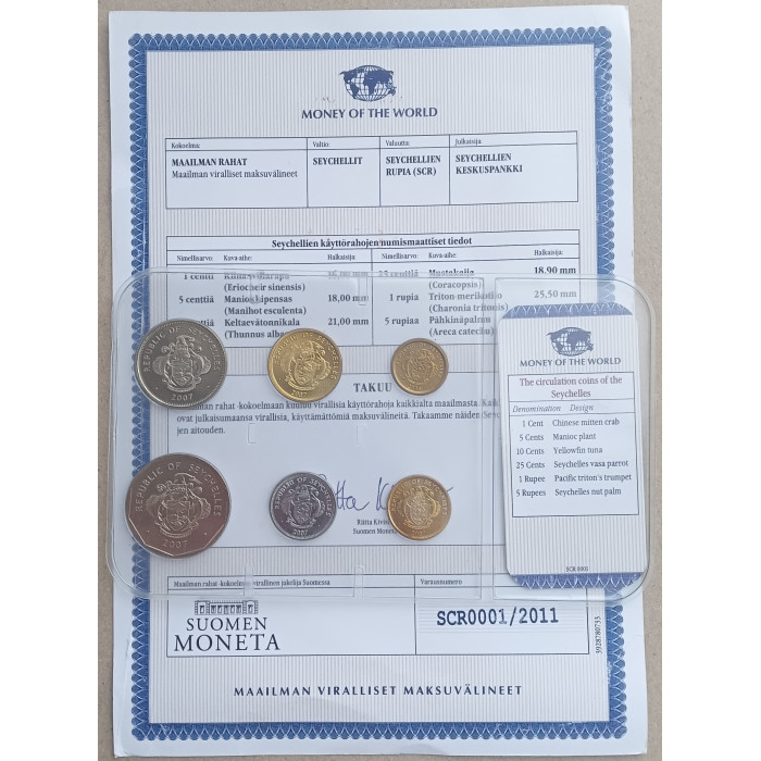 Сейшелы, Набор 6 монет, 1 , 5 , 10, 25 Центов 1, 5 Рупий 2007 год