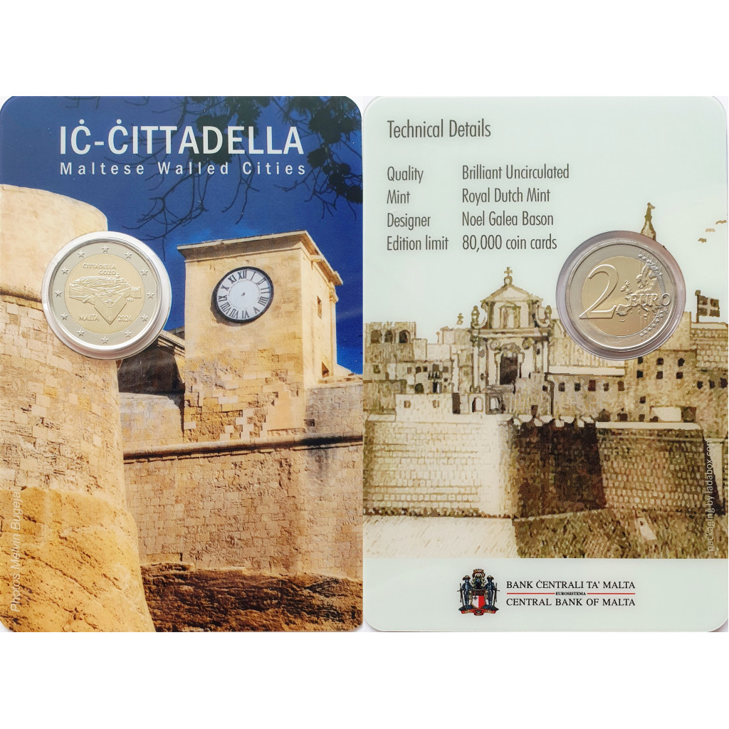 Мальта 2 евро 2024 год BUNC UC# 119 Мальтийские стены - Цитадель Гозо