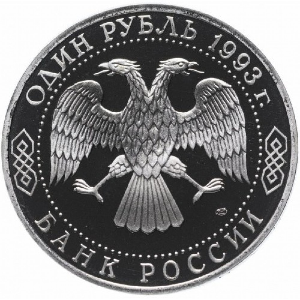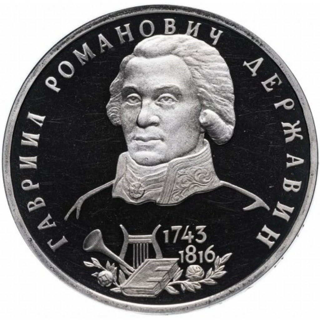 Россия 1 рубль 1993 ЛМД PROOF Y# 325 250 лет со дня рождения Гаврилы Романовича Державина в запайке