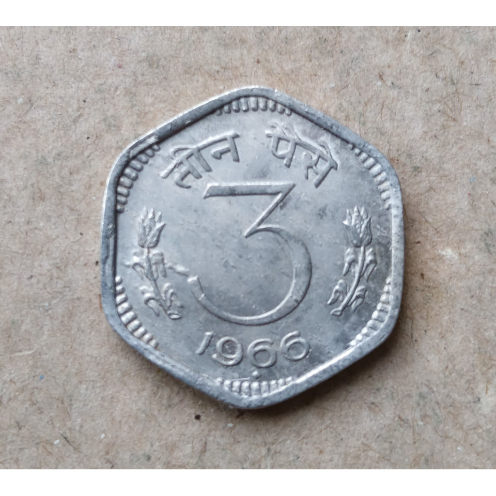 Индия 3 Пайсы 1966 год