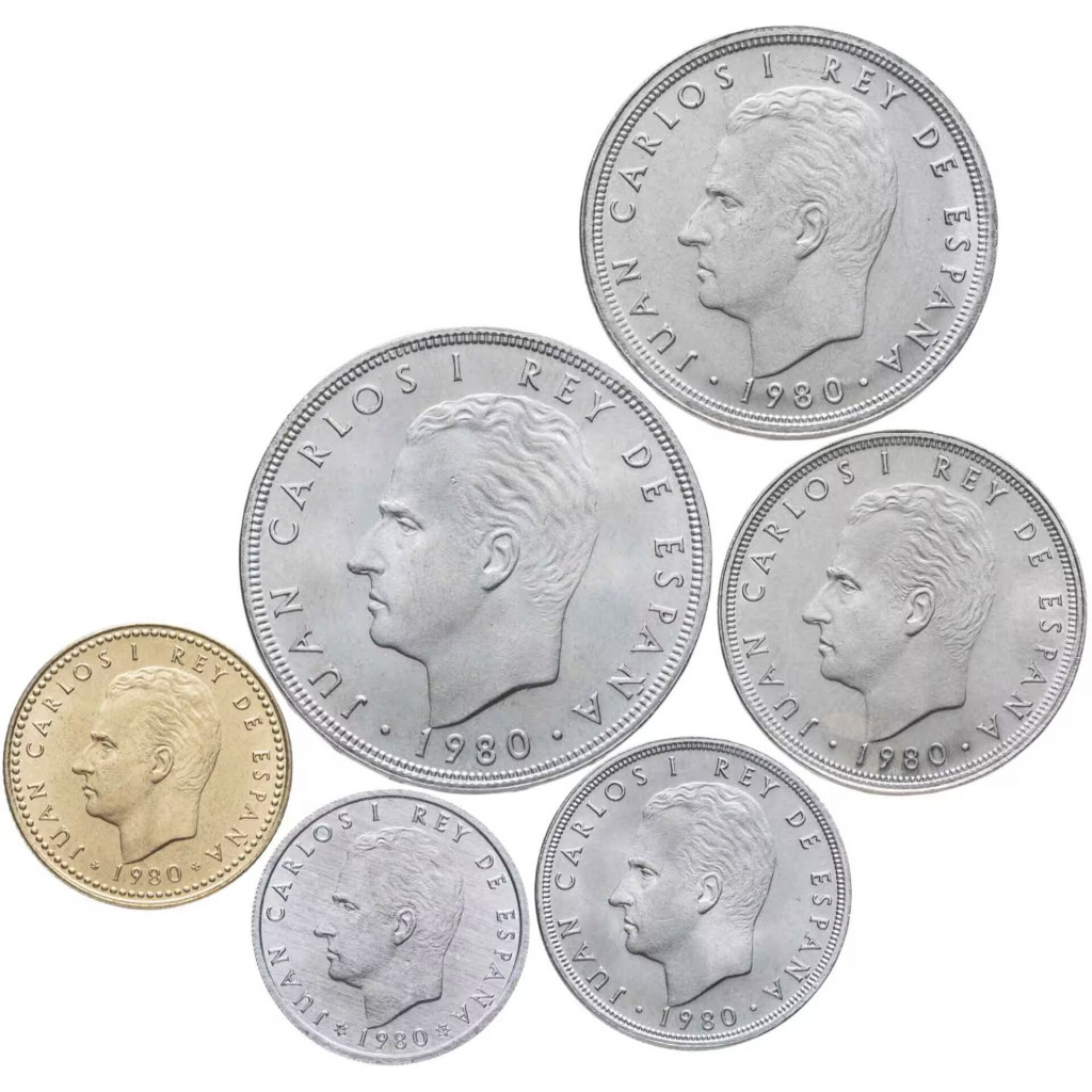 Испания 50 сентимо 1 5 25 50 100 песет 1980 год Набор 6 монет