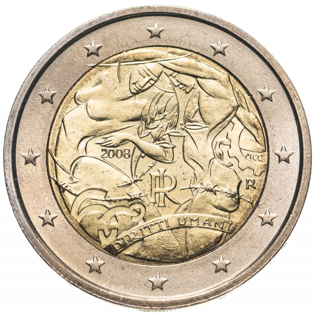 Италия 2 евро 2008 год 60 лет Всеобщей Декларации Прав Человека UNC KM# 301