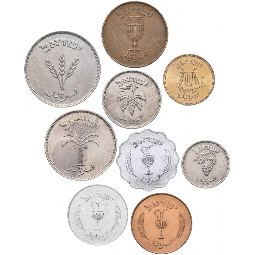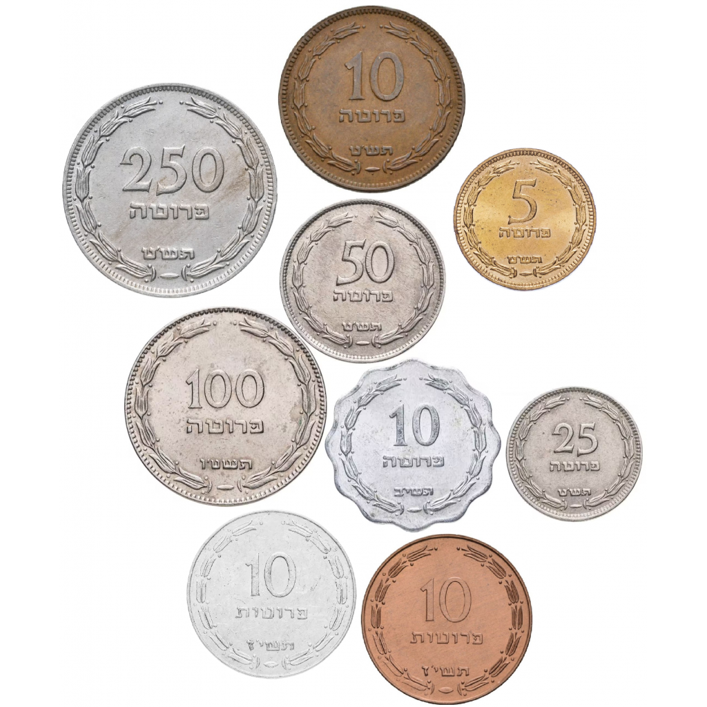 Израиль 5 10 25 50 100 250 прут 1949-1957 год Набор из 9 монет