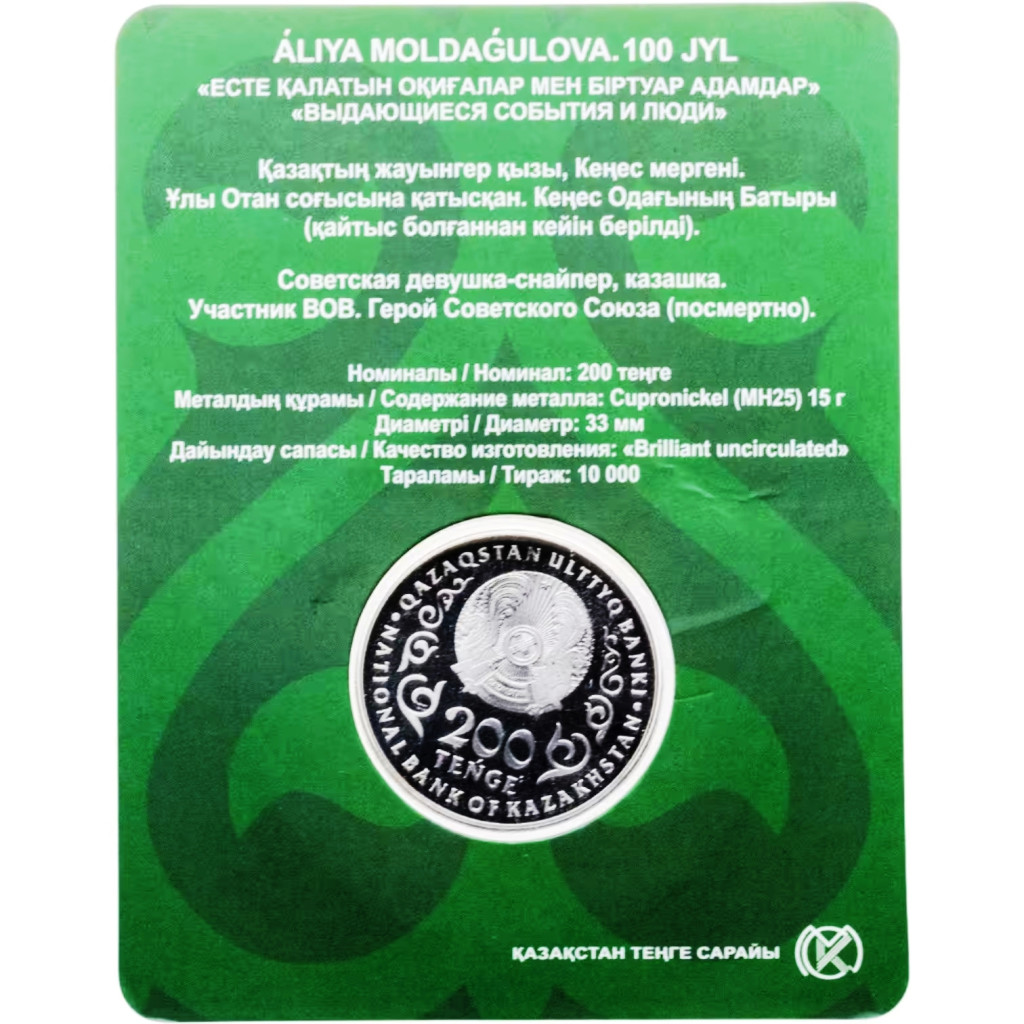 Казахстан 100 Тенге 2025 год UC# 495 Алия Молдагулова В блистере