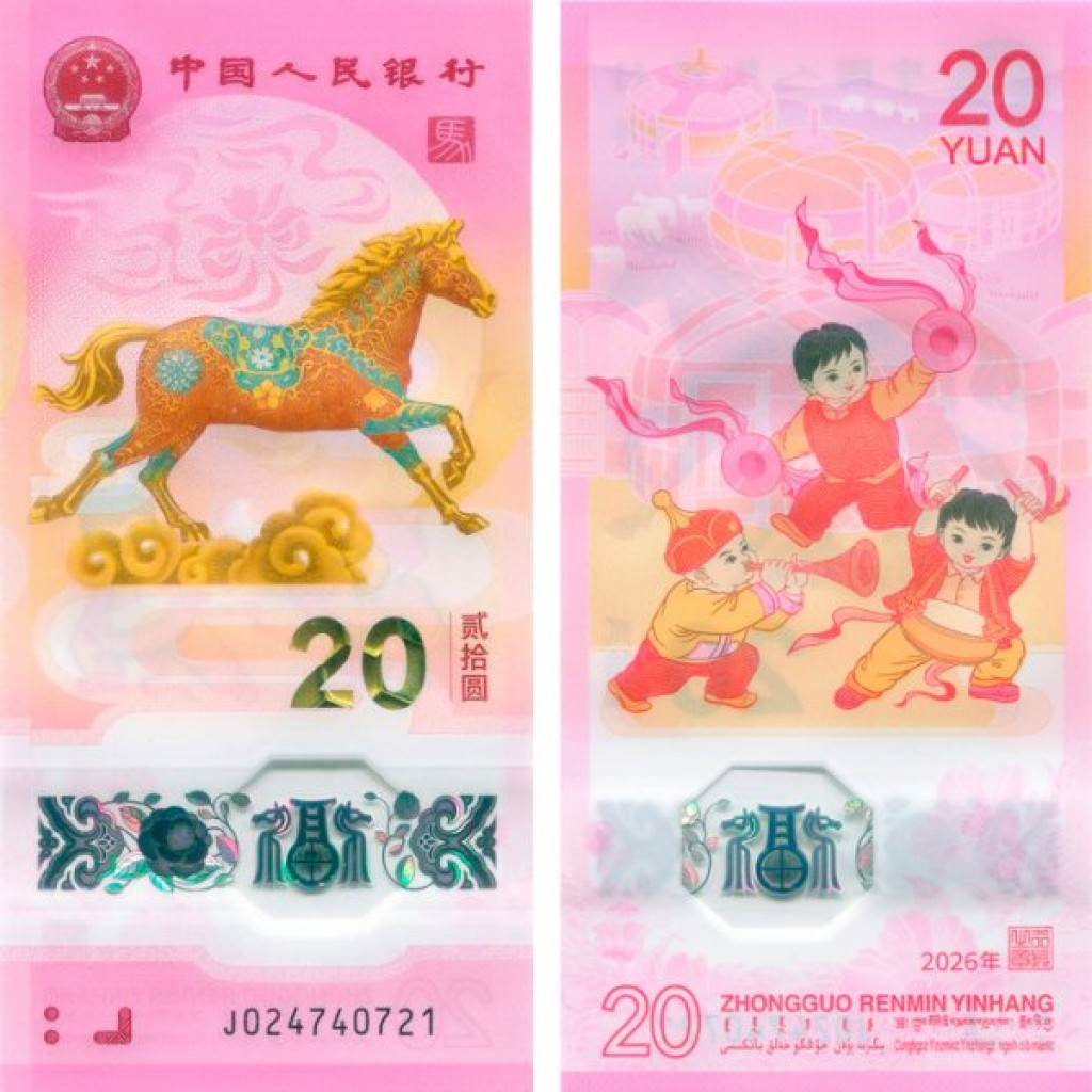 Китай 20 юаней 2026 год Год Лошади UNC P-922a
