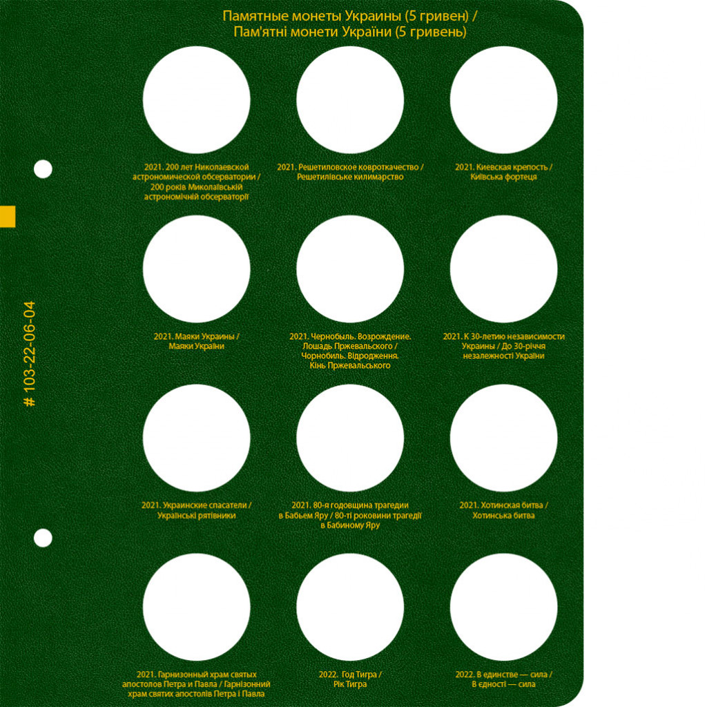 Лист № 4 альбома «Памятные монеты Украины (5 гривен). Том 4»