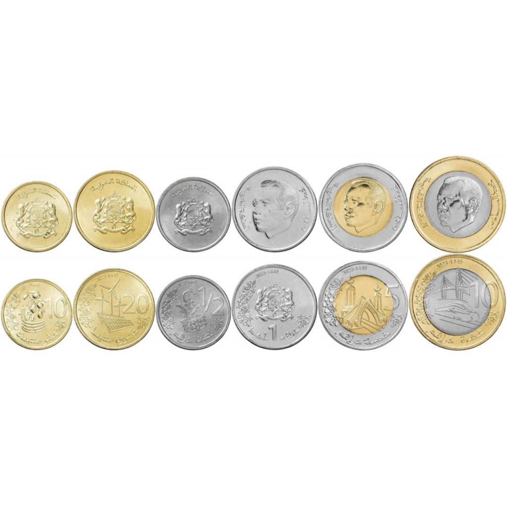 Марокко 10 20 сантимов 1/2 1 5 10 дирхамов 2023 год Набор 6 монет