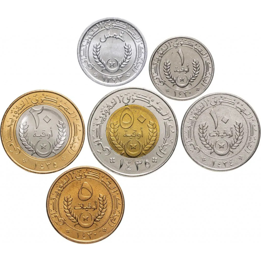 Мавритания 1/5 1 5 10 20 50 угий 1973-2014 год Набор 6 монет