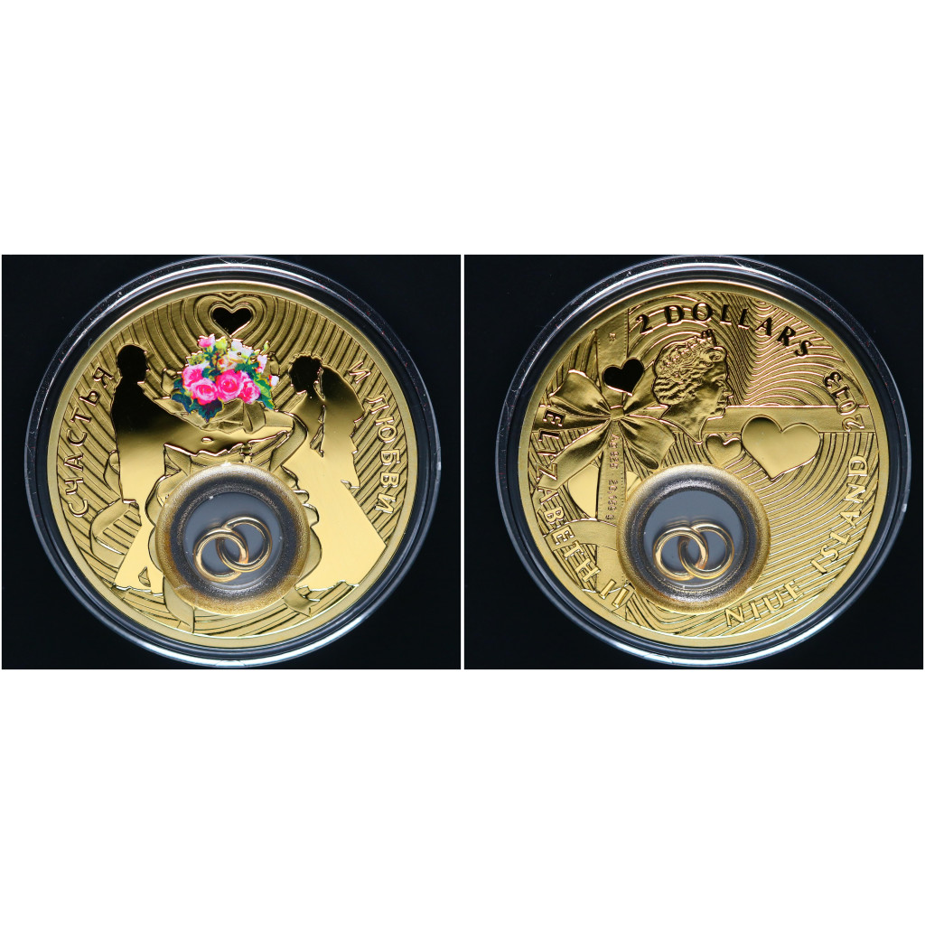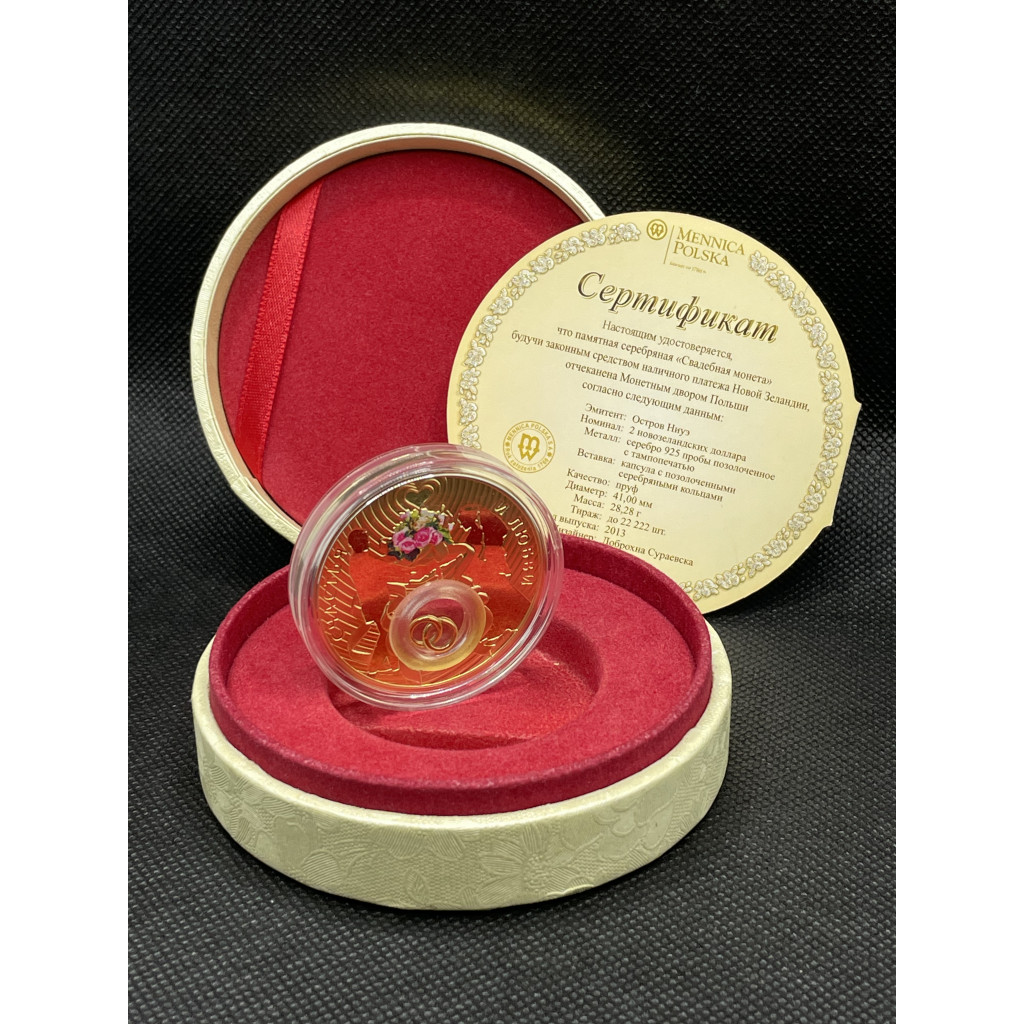 Ниуэ 2 Доллара 2013 год Ag Кольца Свадьба Счастье и Любовь Сердце Елизавета II Позолота Цветная