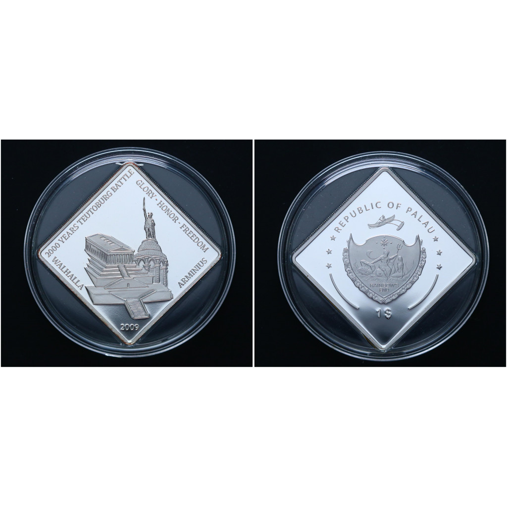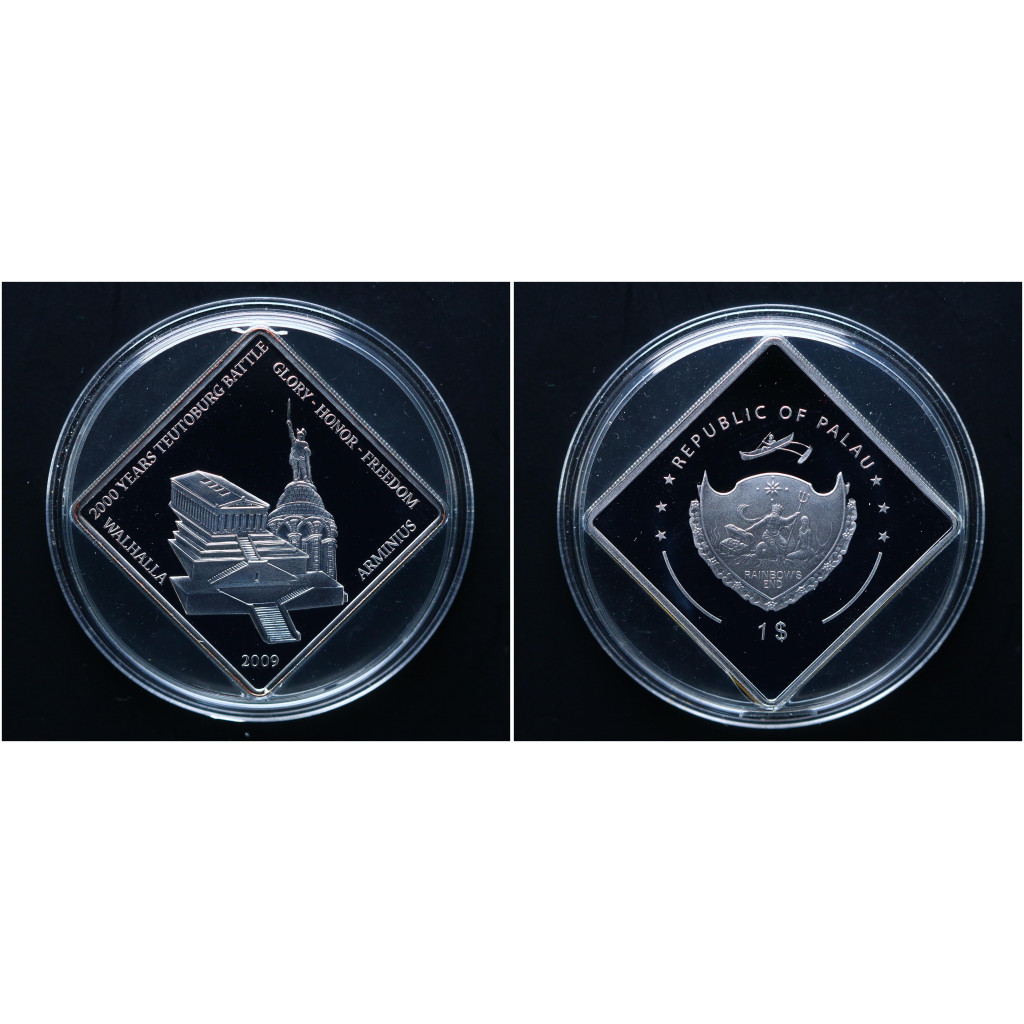 Палау 1 Доллар 2009 год Парфенон. Вальхалла. Памятник Арминию 2000 лет Битве в Тевтобургском лесу Серебрение Пруф / Proof