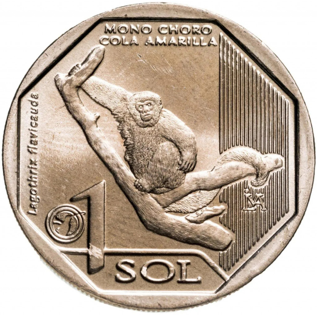 Перу 1 соль 2019 год Желтохвостая обезьяна UNC UC# 110