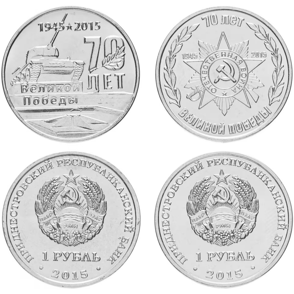 Приднестровье 1 рубль 2015 год UNC UC# 110 111 ПМР 70 лет Великой Победы (Танк и эмблема) (BOX411)