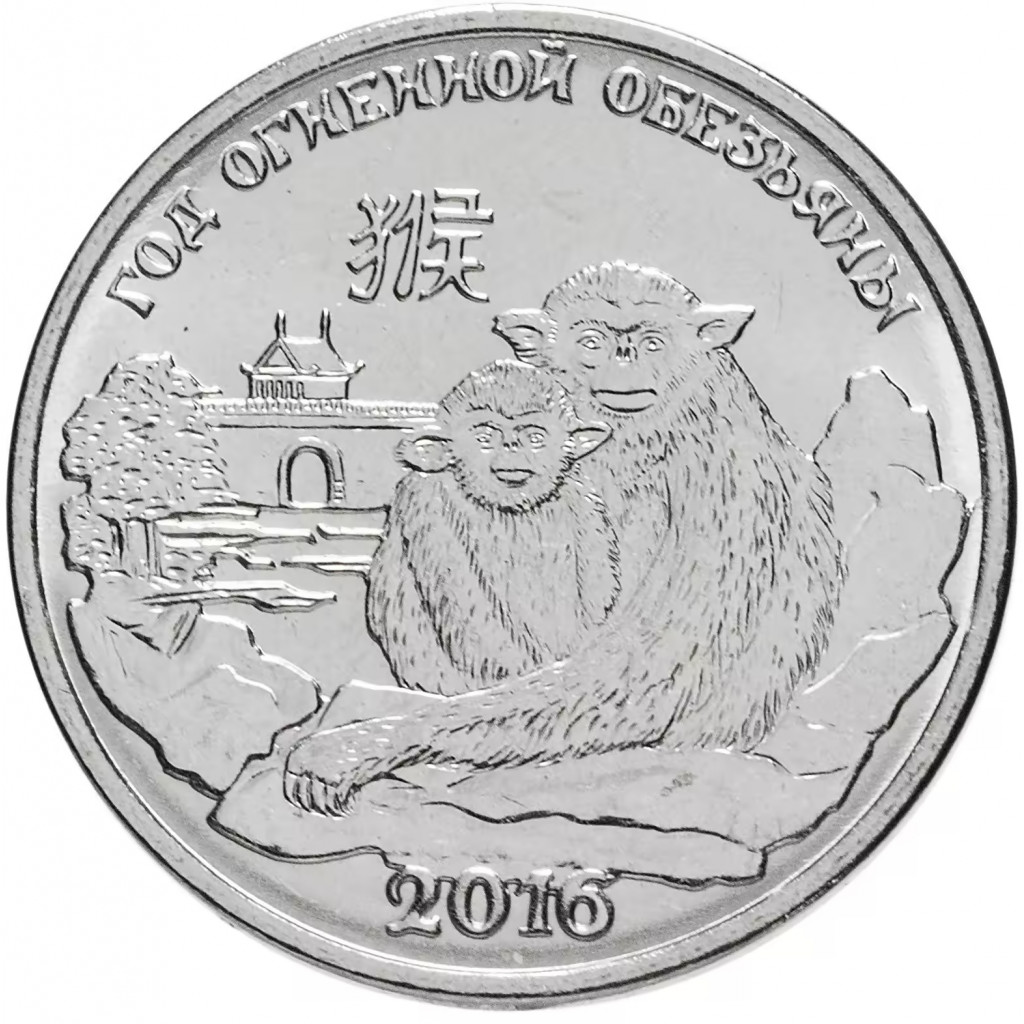 Приднестровье 1 рубль 2015 год UNC UC# 117 ПМР Китайский гороскоп - год обезьяны (BOX402)