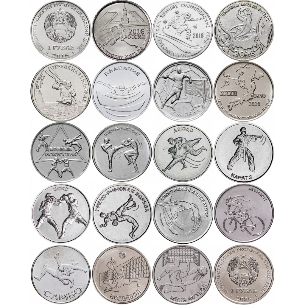 Приднестровье 1 рубль 2016-2024 год Спорт Набор 18 монет UNC