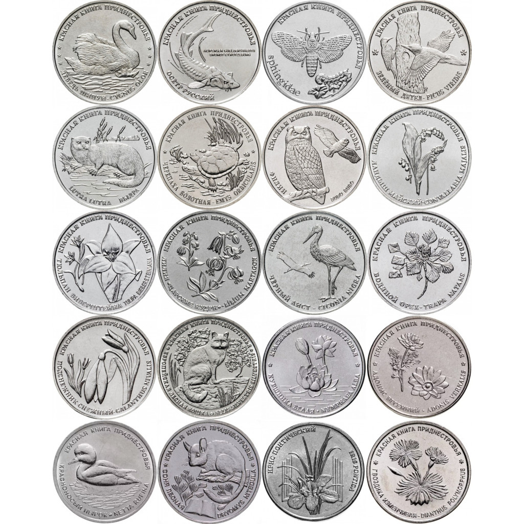 Приднестровье 1 рубль 2018-2025 год Красная книга Набор 20 монет UNC