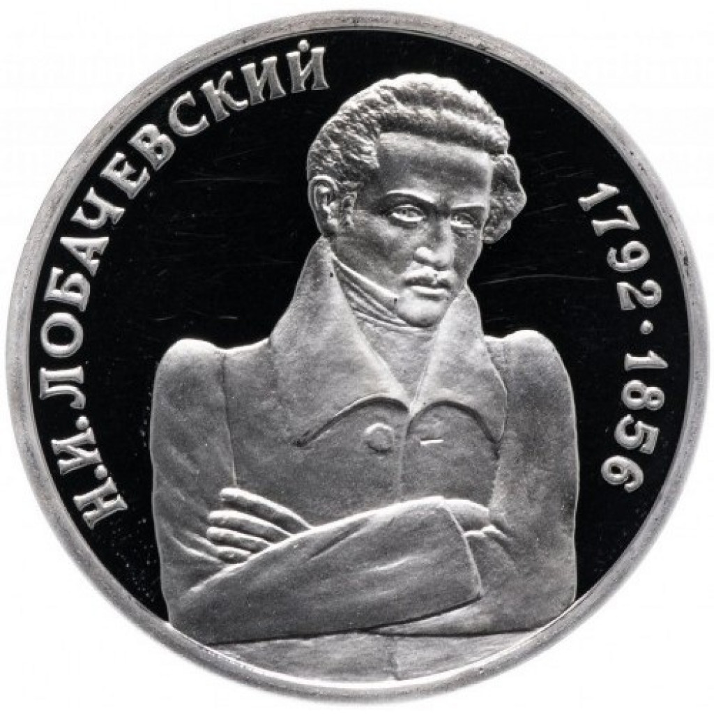 Россия 1 рубль 1992 год PROOF Лобачевский Н. И. в запайке Y# 321