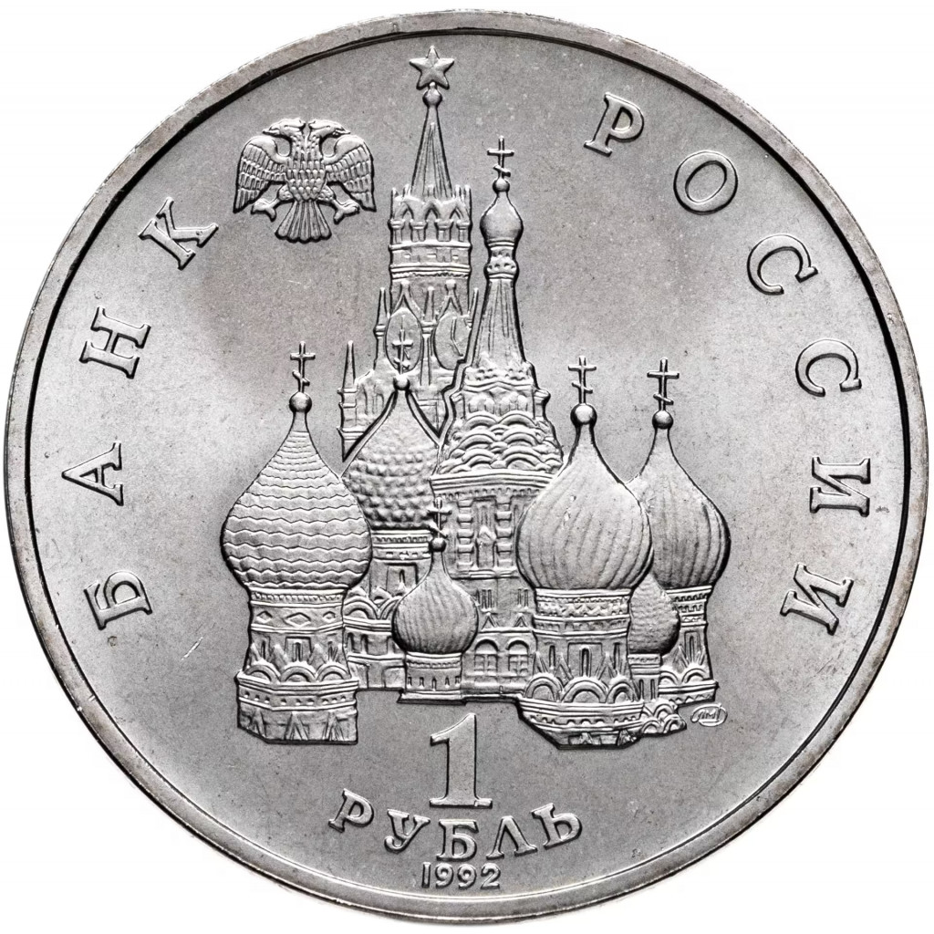Россия 1 рубль 1992 год UNC Янка Купала в запайке Y# 320