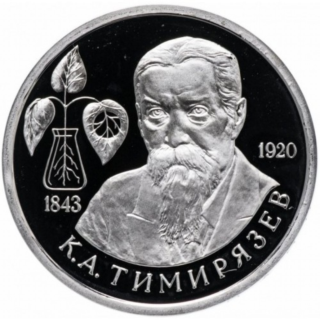 Россия 1 рубль 1993 год PROOF Тимирязева К. А. в запайке Y# 326