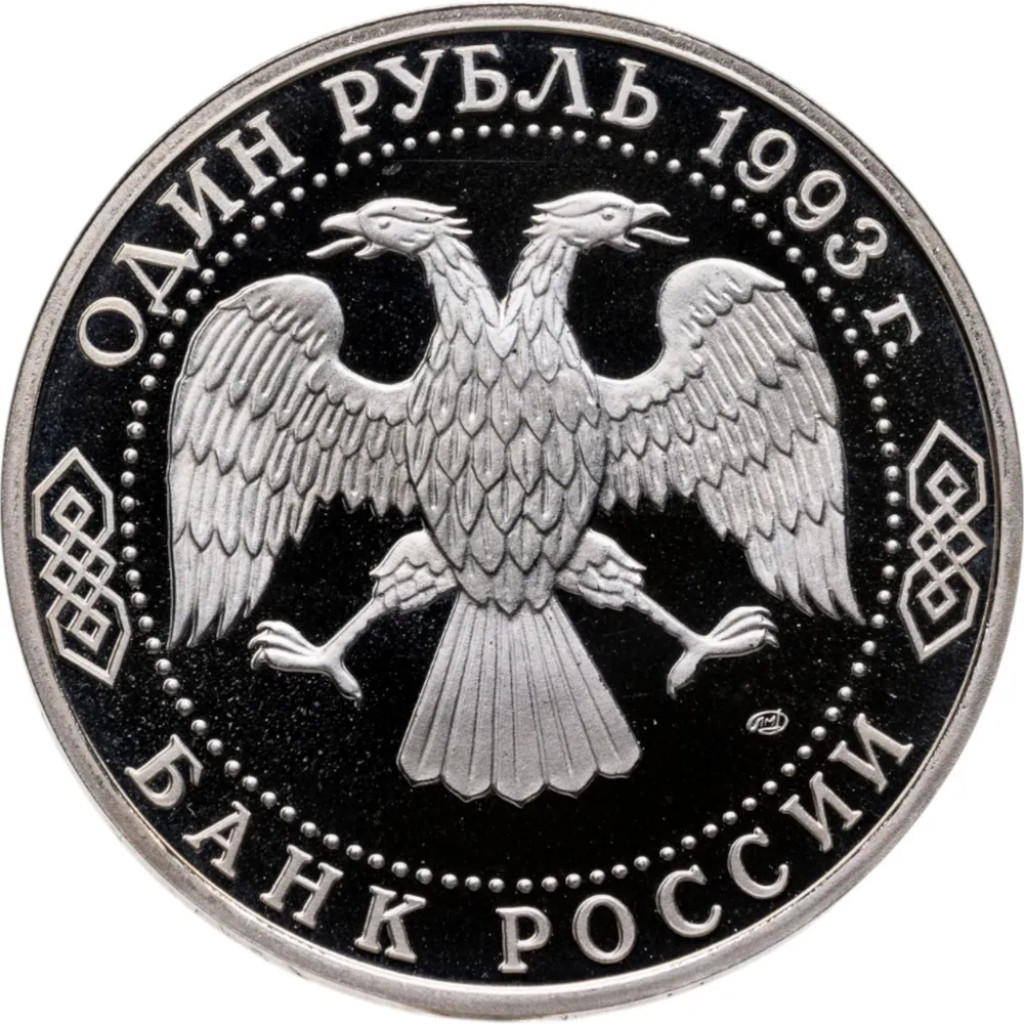 Россия 1 рубль 1993 год PROOF Тургенев И. С. в запайке Y# 348
