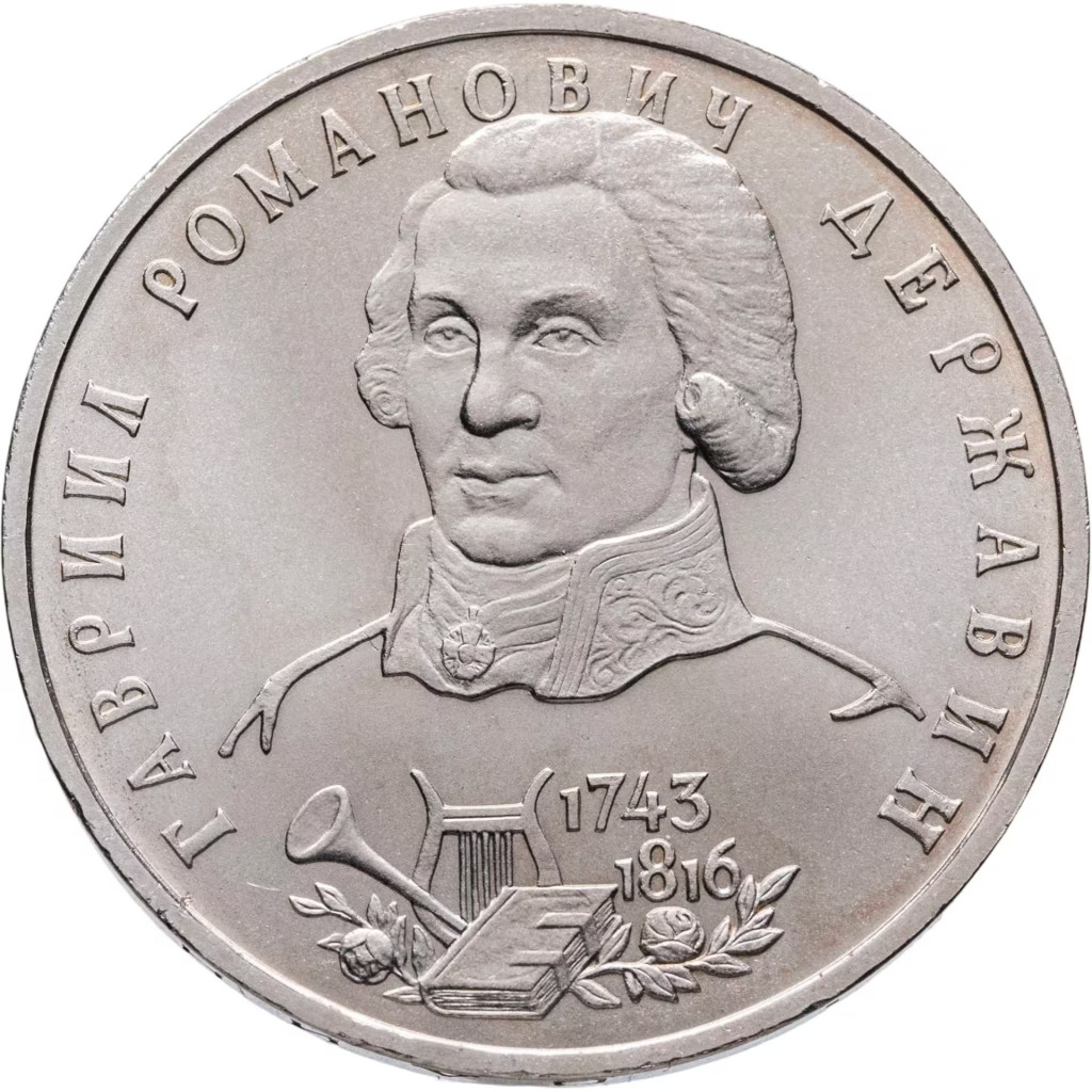Россия 1 рубль 1993 год UNC Державин Г. Р. в запайке Y# 325