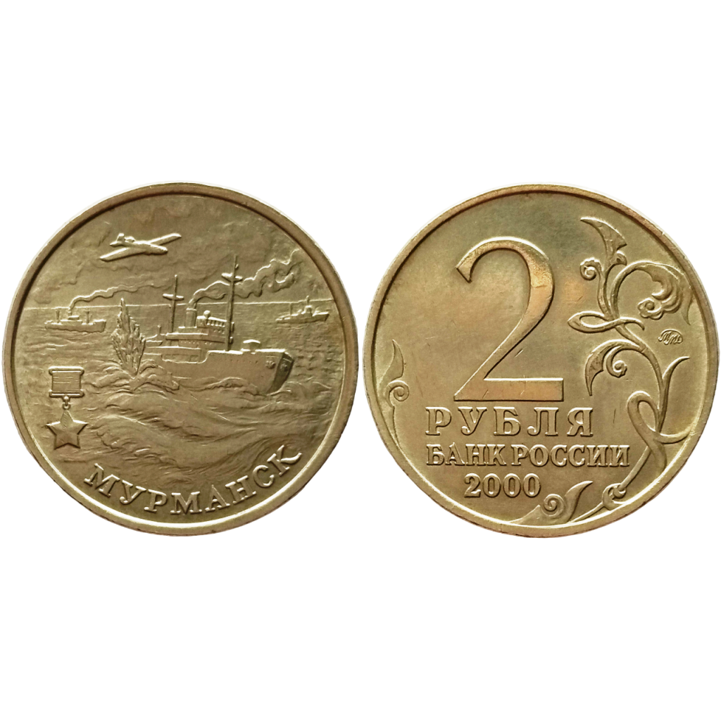 Россия 2 рубля 2000 ММД год Из оборота Y# 666 Мурманск, 55 лет Победы