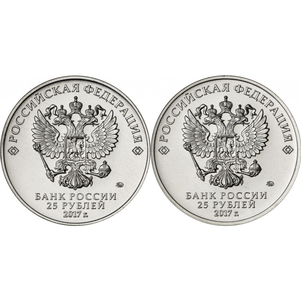 Россия 25 Рублей 2017 ММД год UNC UC# 165, 166 Винни-Пух Три Богатыря Российская (советская) мультипликация Набор из 2 монет