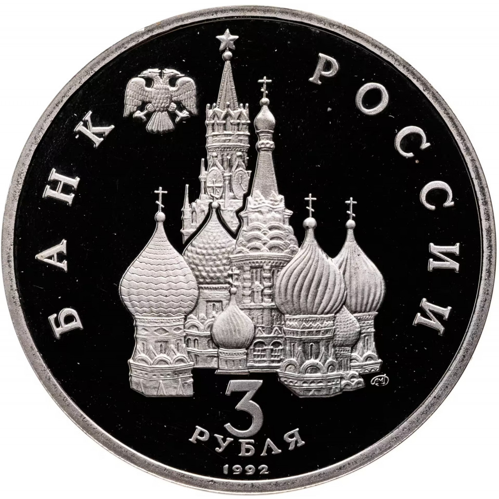 Россия 3 рубля 1992 год PROOF 750 лет Победе Александра Невского на Чудском озере в запайке Y# 298