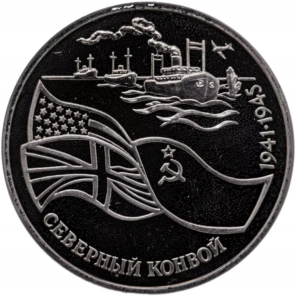 Россия 3 рубля 1992 год PROOF Северный конвой. 1941-1945 гг в запайке Y# 304