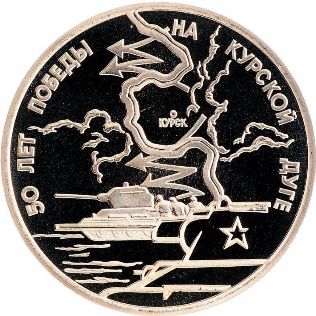 Россия 3 рубля 1993 год PROOF 50 лет Победы на Курской дуге в запайке Y# 328