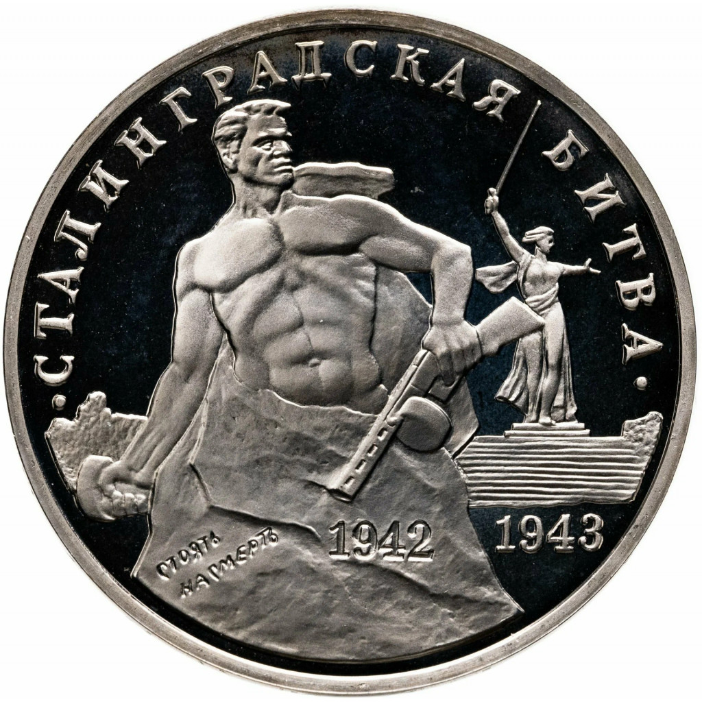 Россия 3 рубля 1993 год PROOF Сталинградская битва в запайке Y# 318