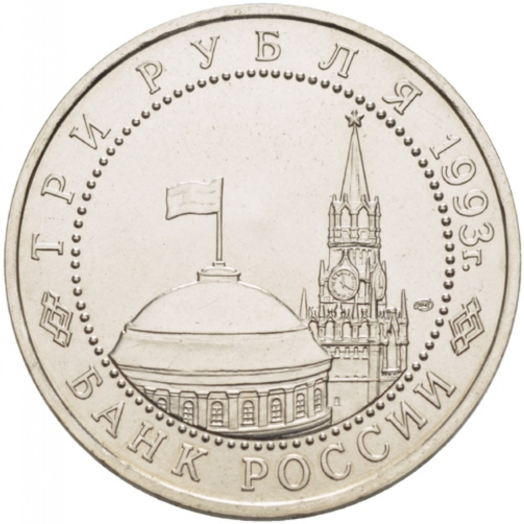 Россия 3 рубля 1993 год UNC 50 лет Победы на Курской дуге в запайке Y# 328