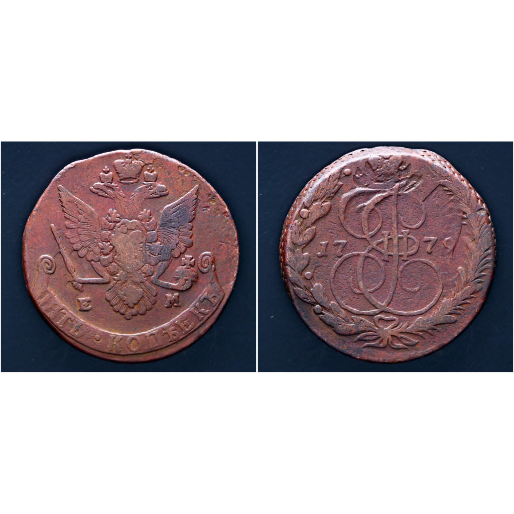 Россия 5 Копеек 1779 ЕМ год. Новый тип Орел С. Екатеринбург Крылья широкие. Гурт сетчатый