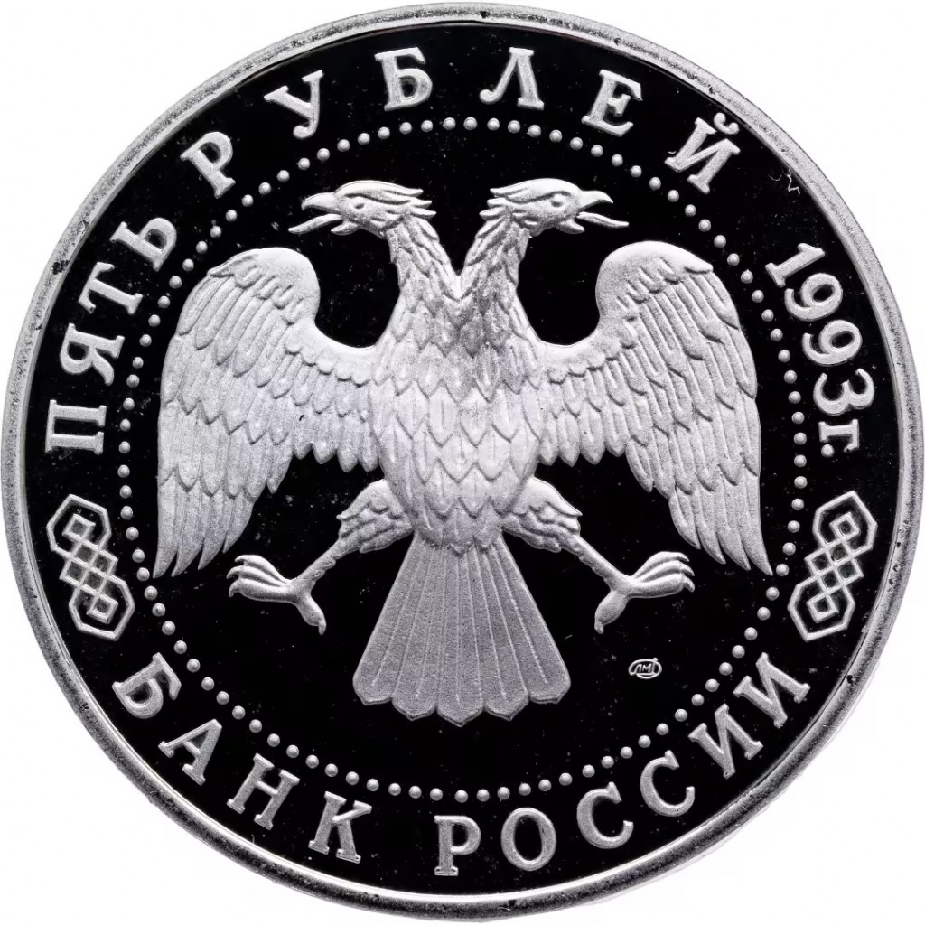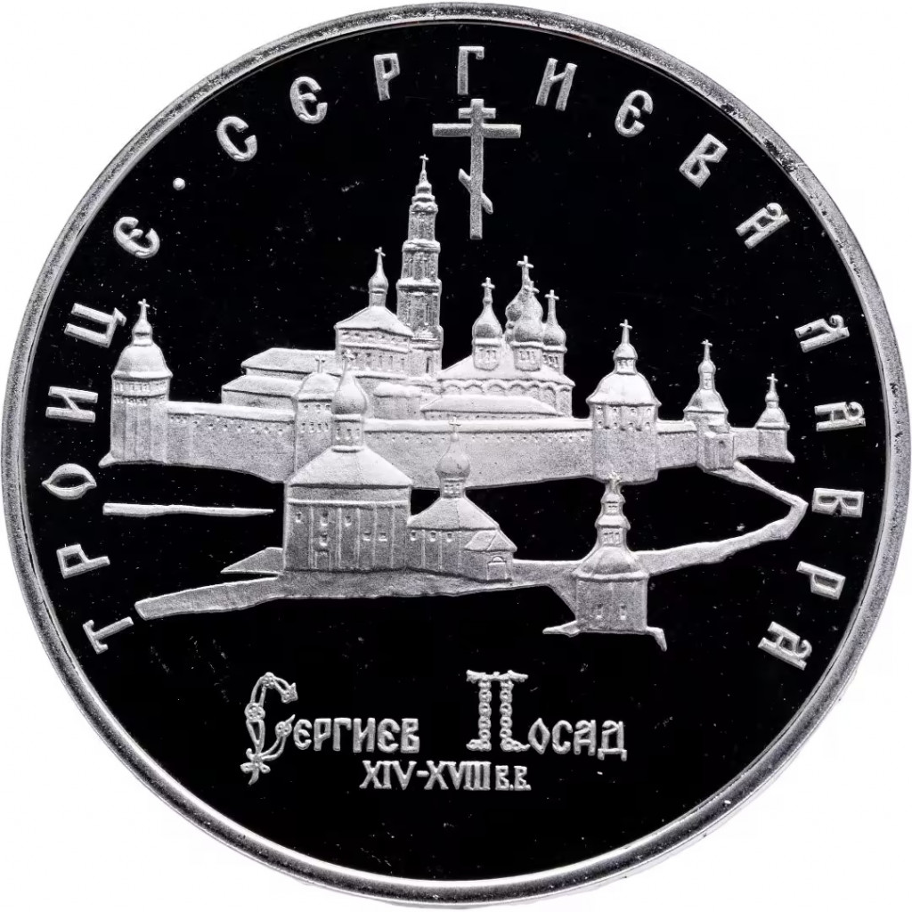 Россия 5 рублей 1993 год PROOF Троице-Сергиева лавра в г. Сергиев Посад в запайке Y# 324