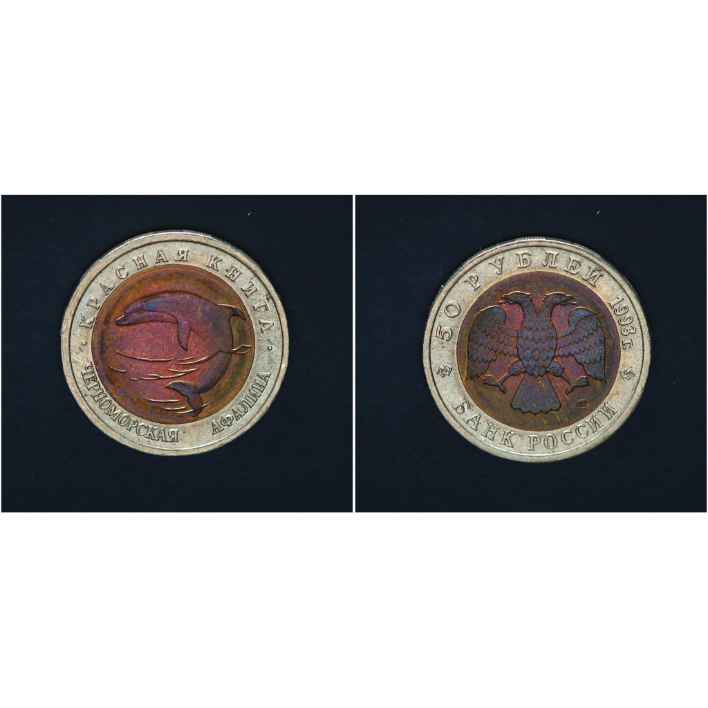 Россия 50 Рублей 1993 ЛМД год Красная книга Черноморская Афалина Биметалл