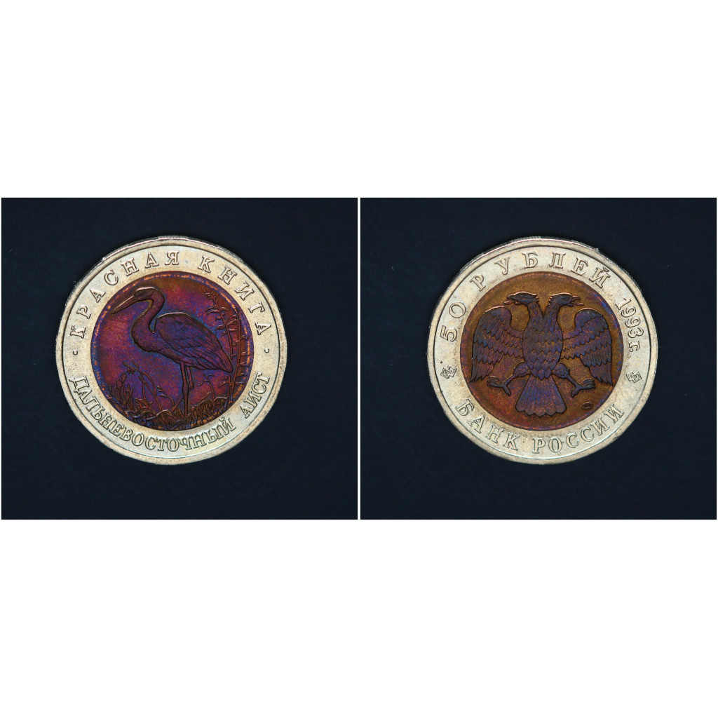 Россия 50 Рублей 1993 ЛМД год Красная книга Дальневосточный аист Биметалл
